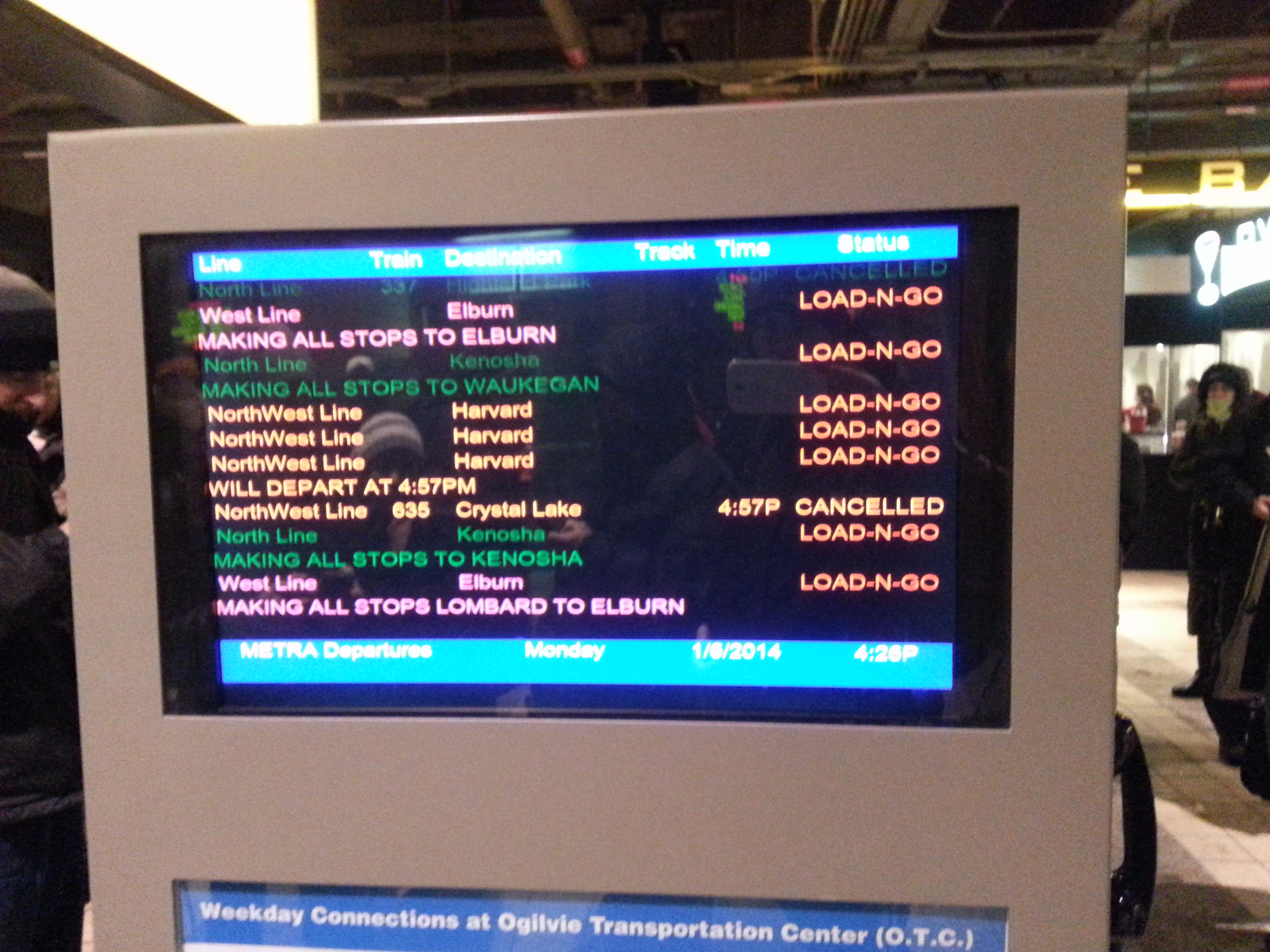 Anyway, as many of you know it was bitter cold, so we threw on our swants and figured everything would be okay, and it was (and our important parts kept very warm). Until the afternoon. See, we ride the suburban commuter trains here in Chicagoland, which have been kept secret from most America until now. In the recent book “We Apologize for the Inconvenience,” undercover agents exposed the off-book, black ops organization operating out of Chicago known as METRA. As the picture above notes, METRA has pretty much no idea what they are doing, which probably explains all the secrecy. There were no tracks or departure times assigned to any of the trains leaving to take us hardworking Americans home yesterday afternoon, only a curious status for each train. But it turns out that METRA knew what they were doing all along. This confused train schedule was actually by design. In an effort to be both economically sound and environmentally conscious, the good folks at METRA finally broke out their ultra-secret LOAD-N-GO initiative.